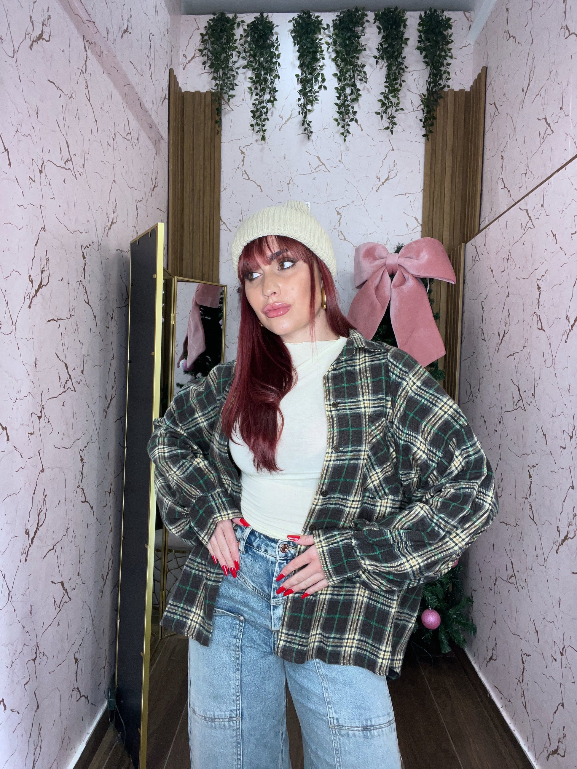 Camicia a quadri in flanella manica ampia tg unica