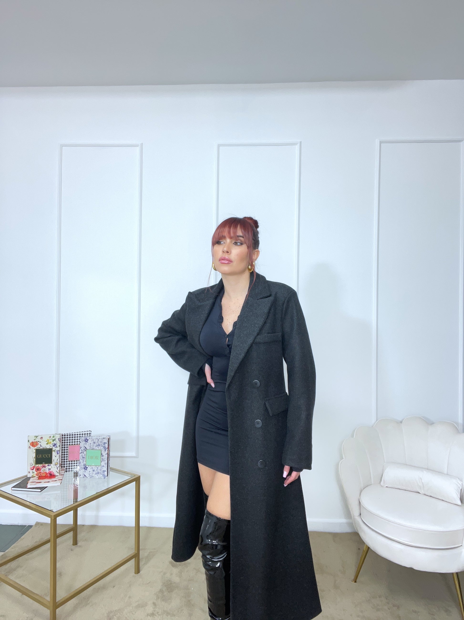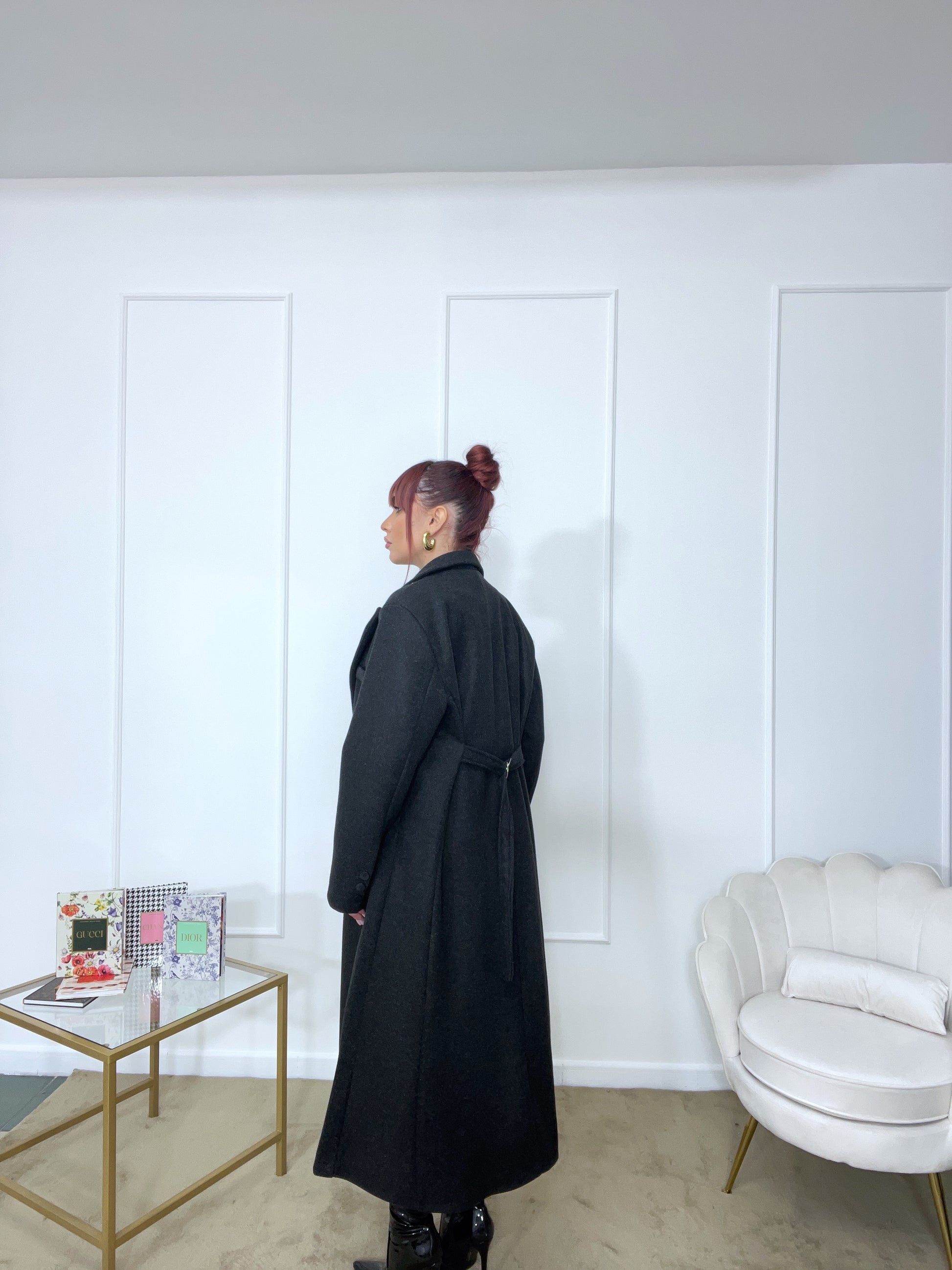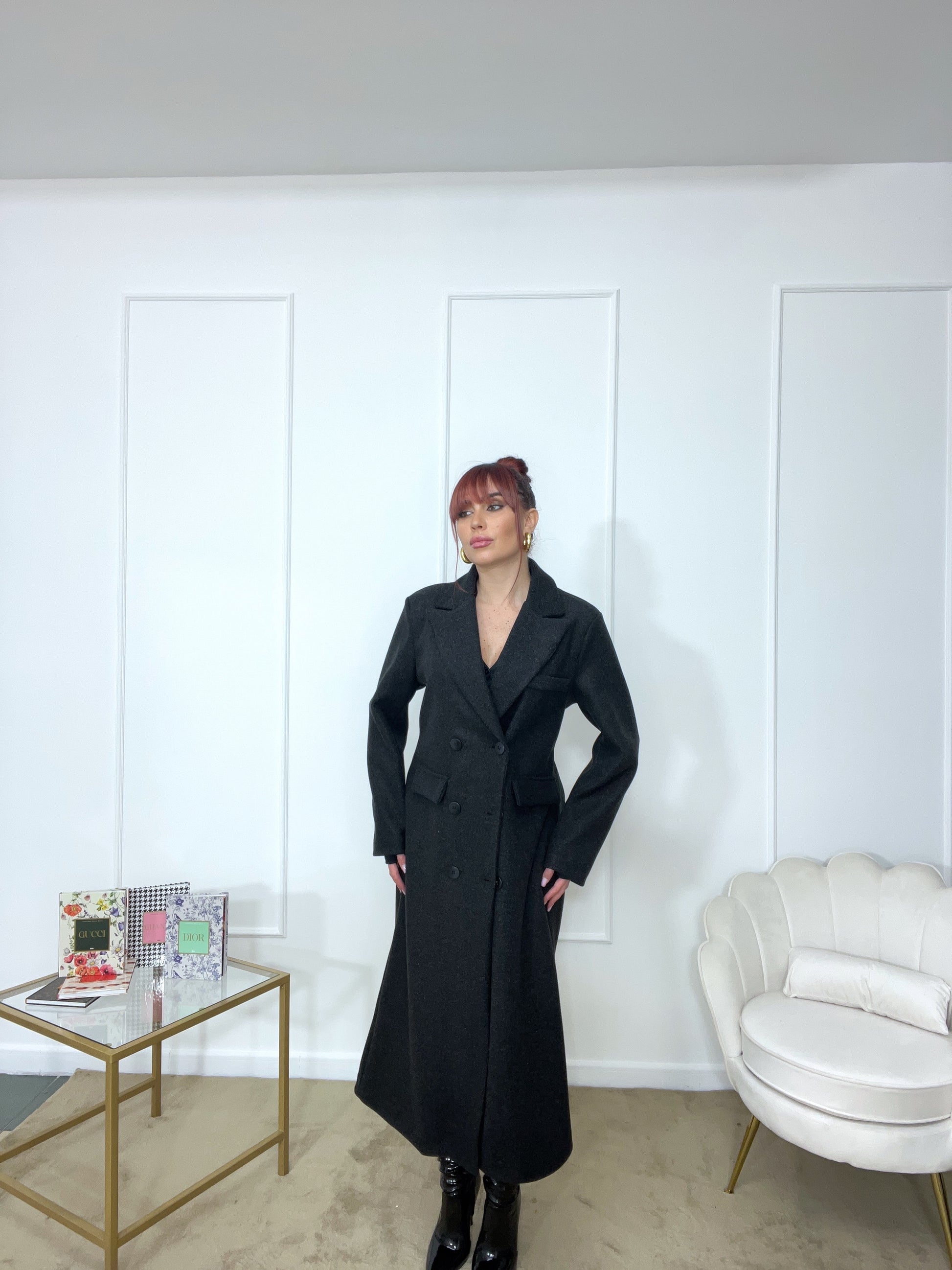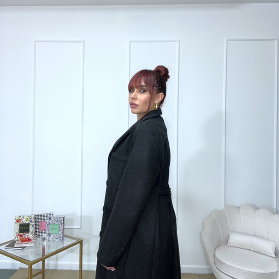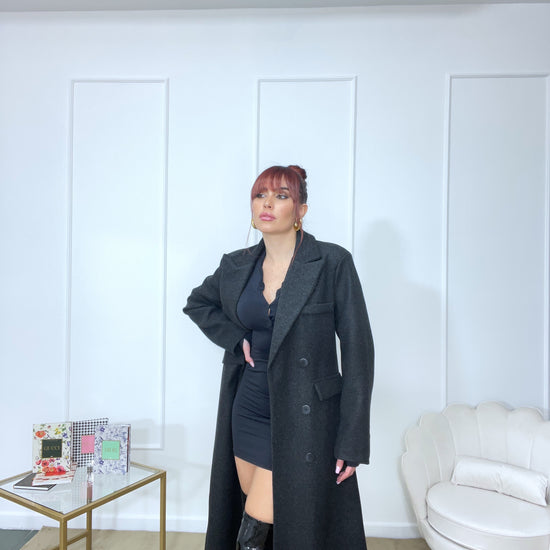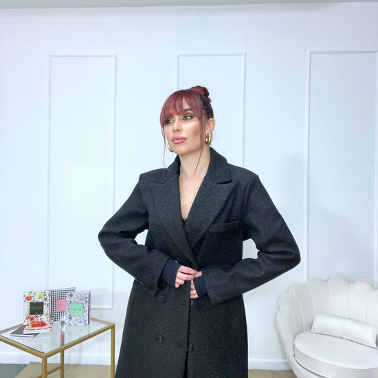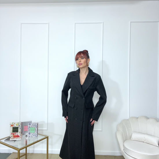 Cappotto spalline imbottite oversize tg unica color grigio scuro tendente al nero