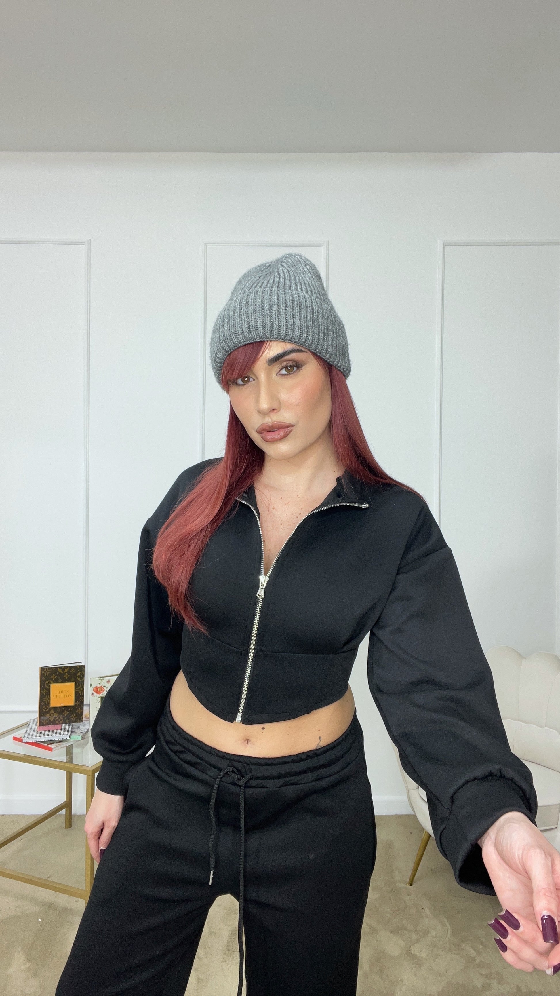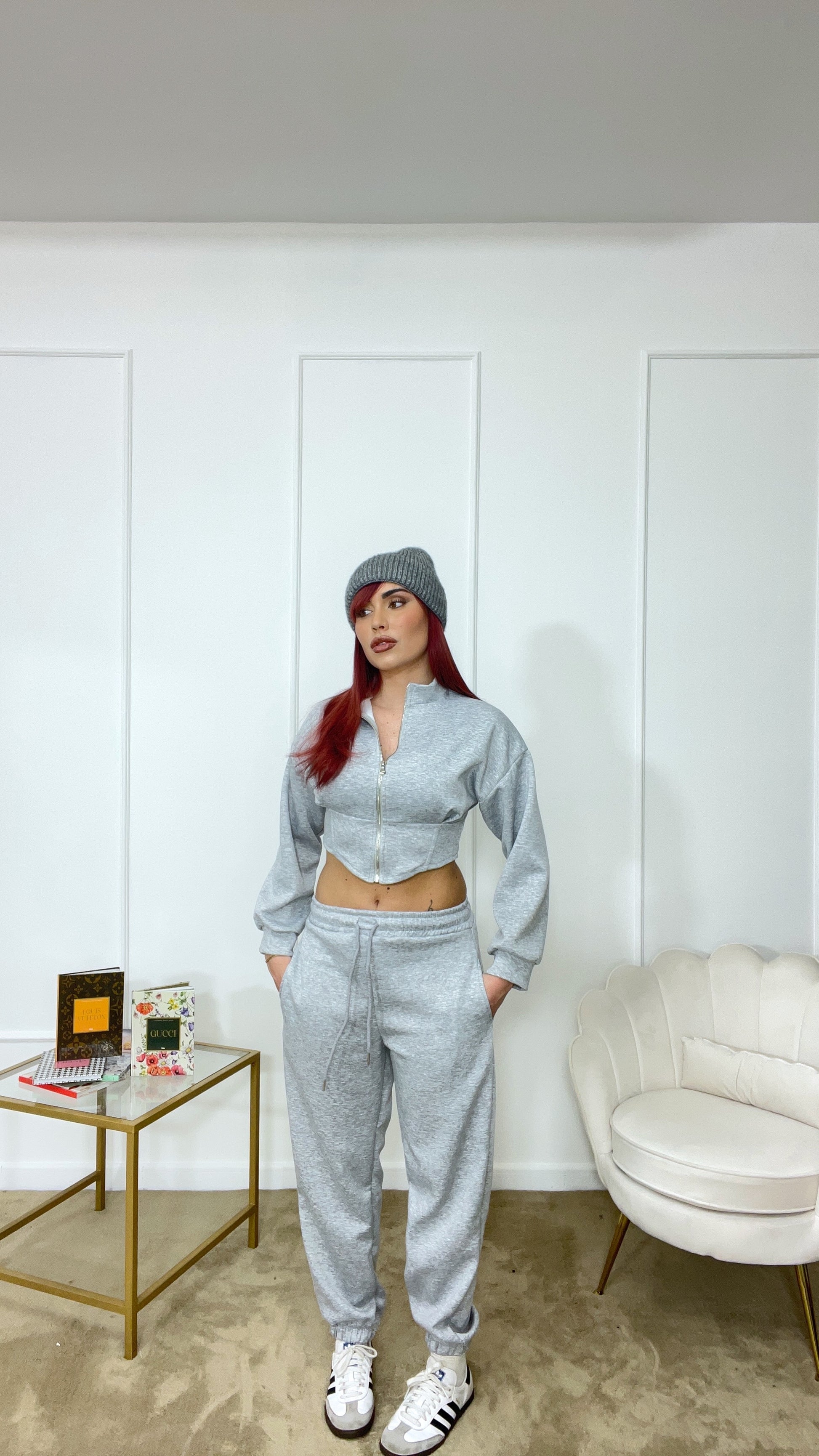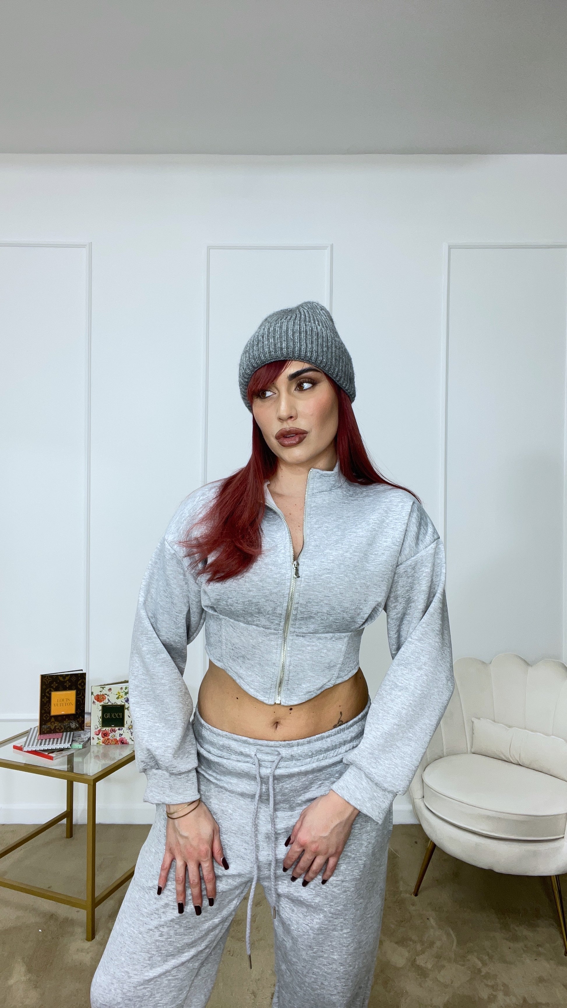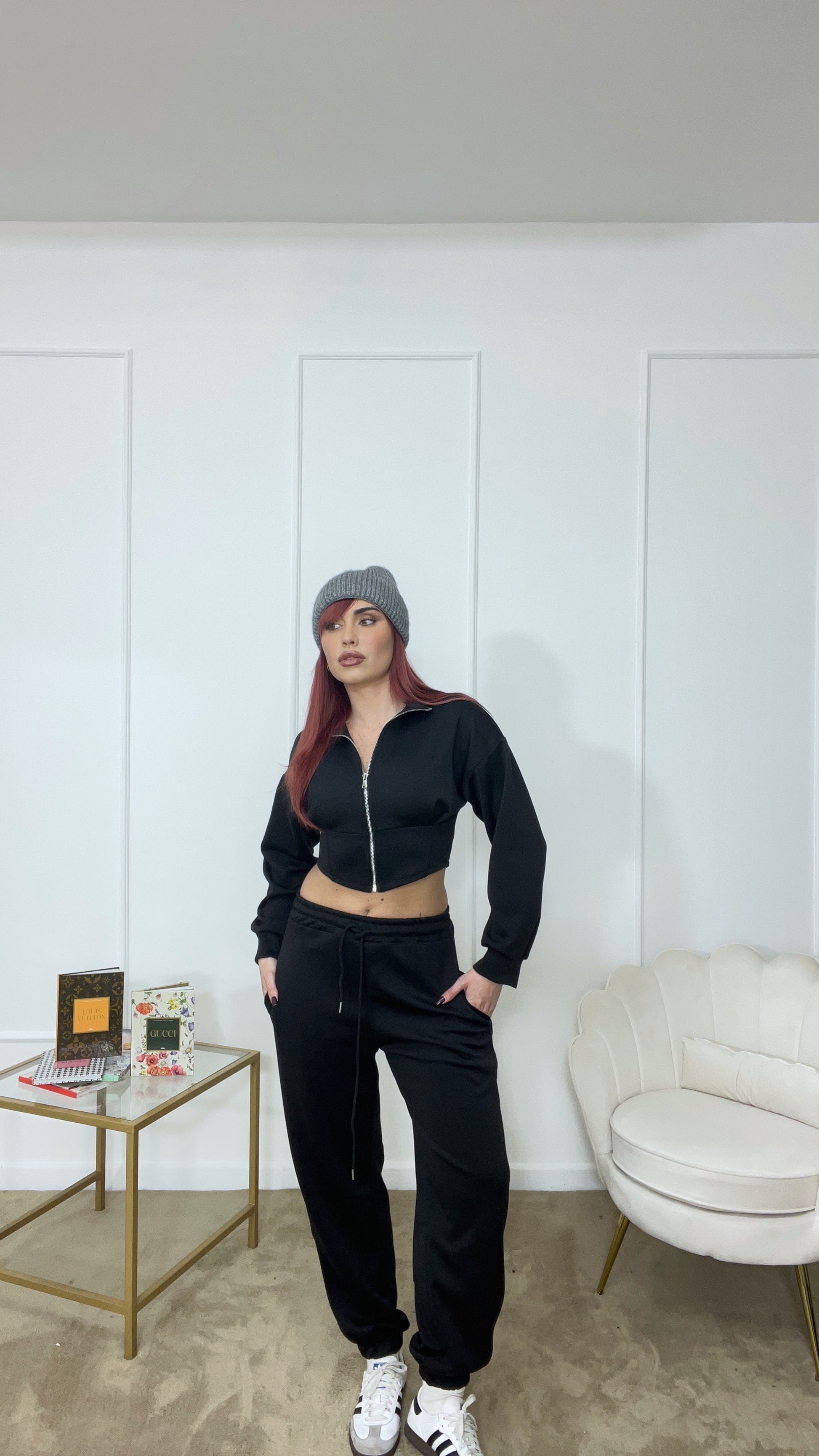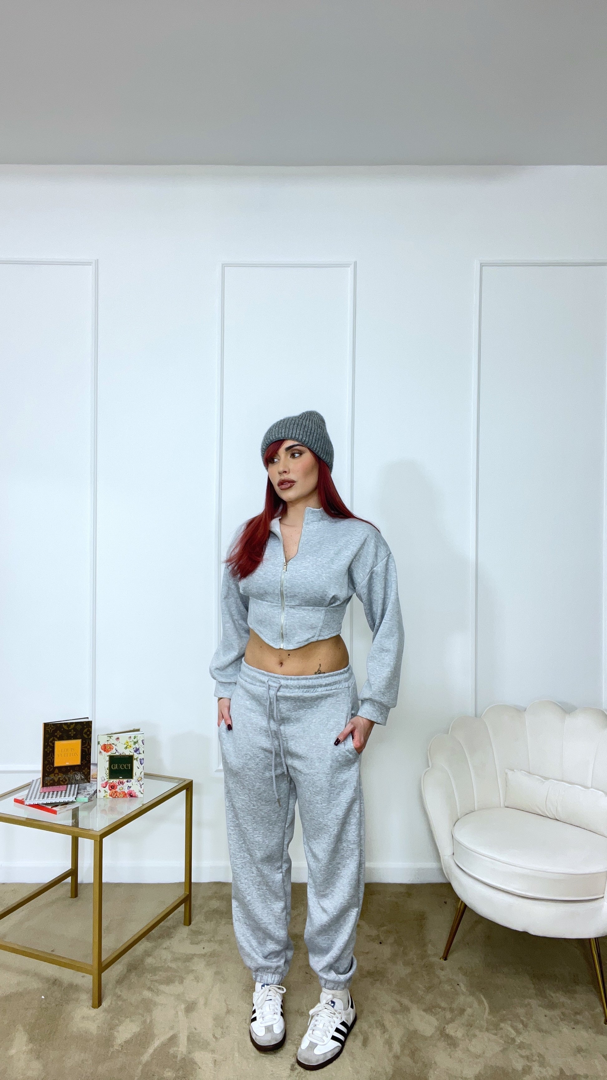 Tuta felpa crop e pantaloni con elastico tg unica
