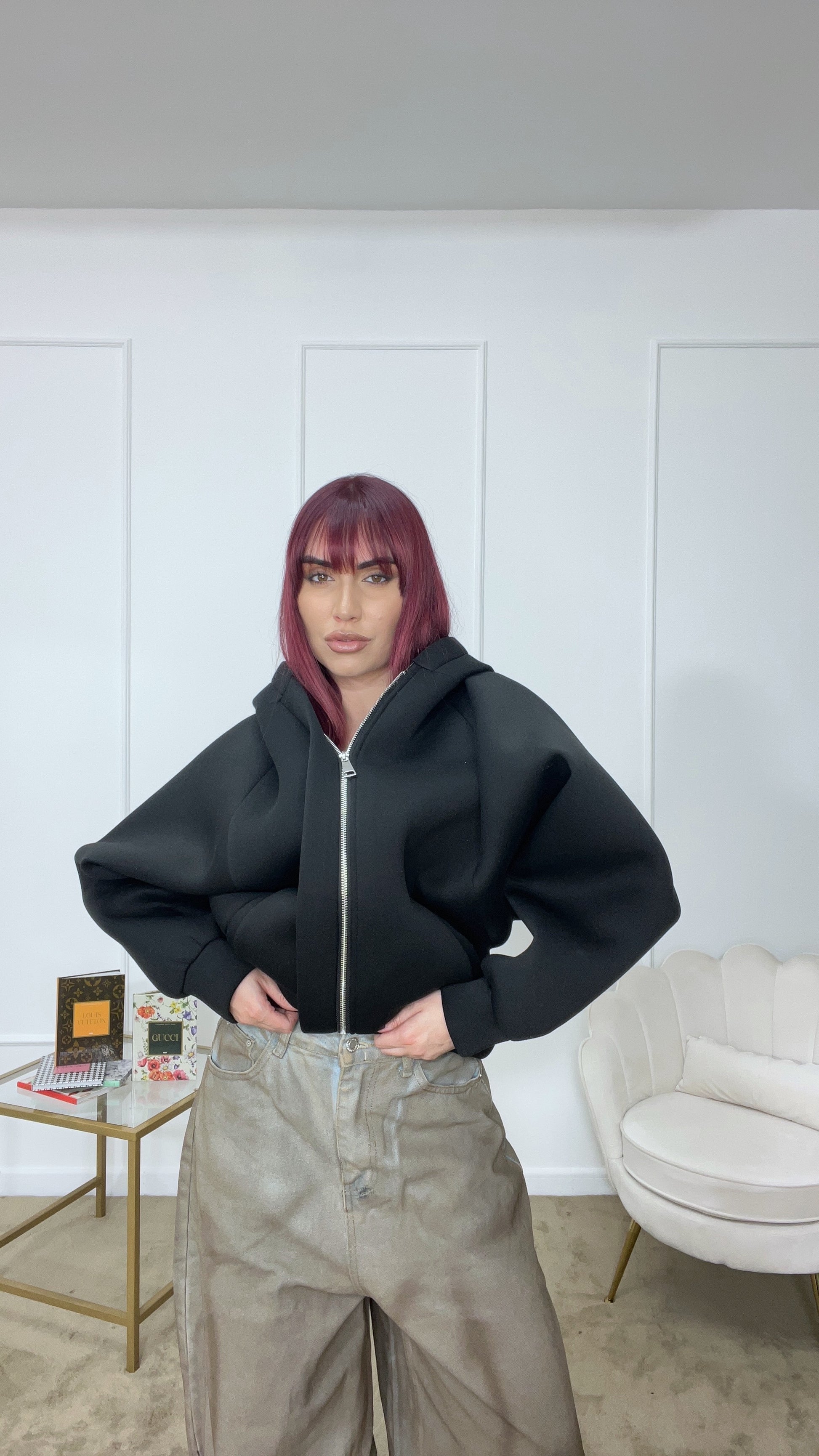 Felpone Premium giacca oversize con zip e cappuccio tg unica veste XS XL