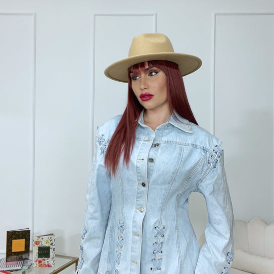 Giacca Denim con stringhe e fiocchi premium quality tg unica veste XS M