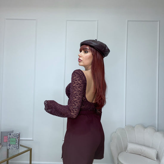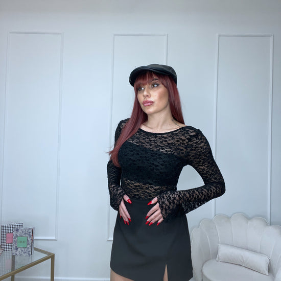 Maglia in pizzo elastica con fascia incorporata scollata sul retro