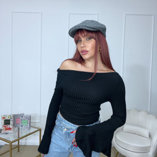 Maglia scollata in lana rasata a costine tg unica