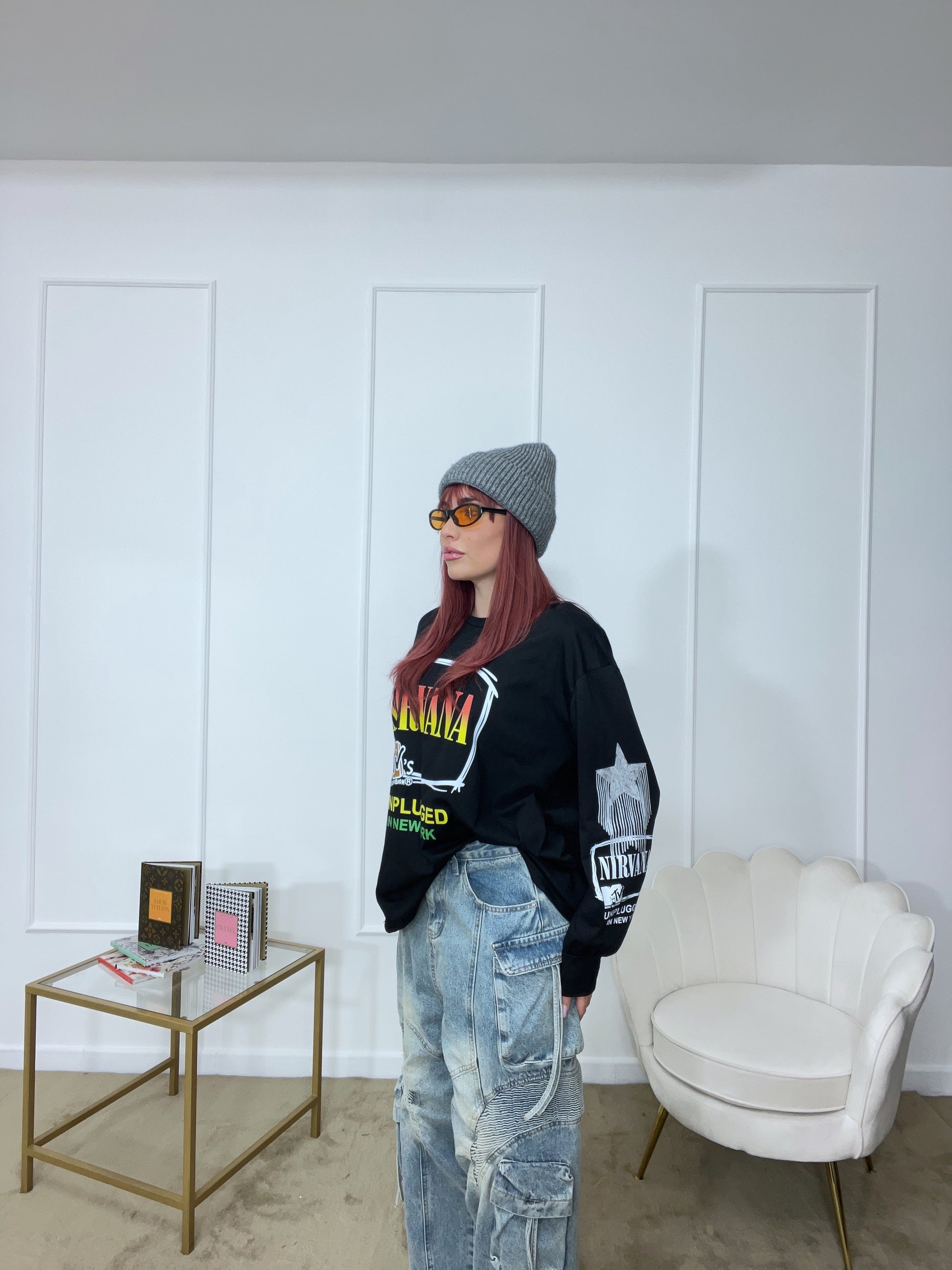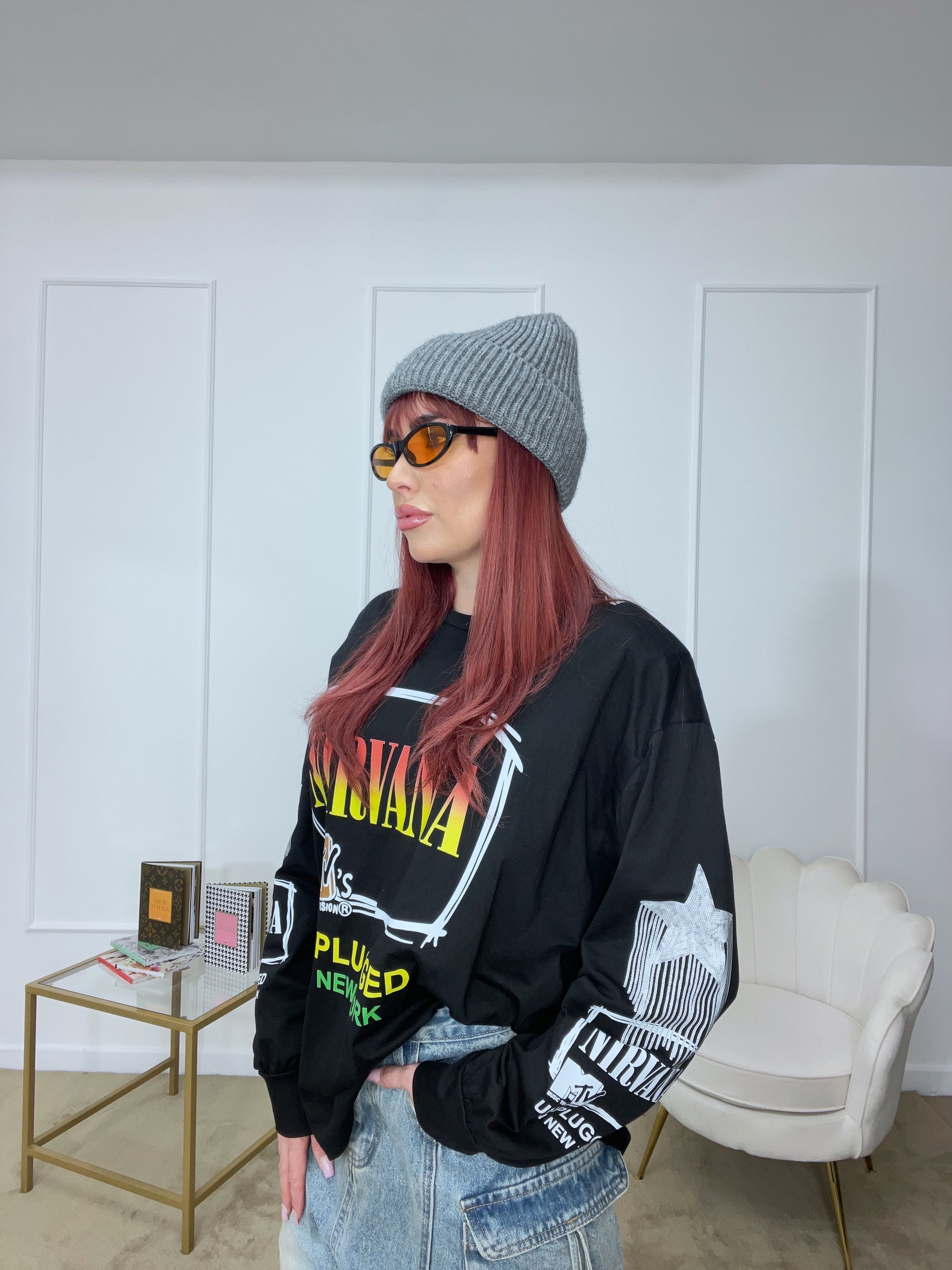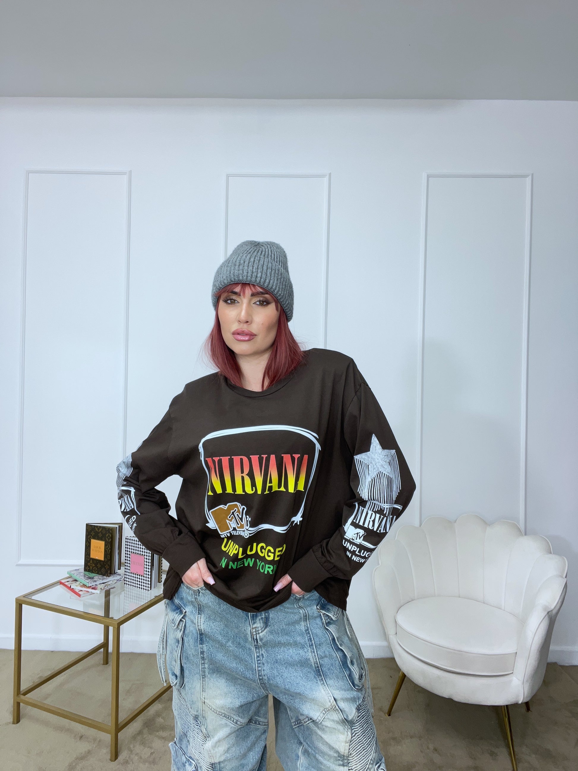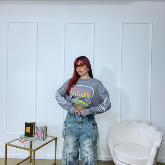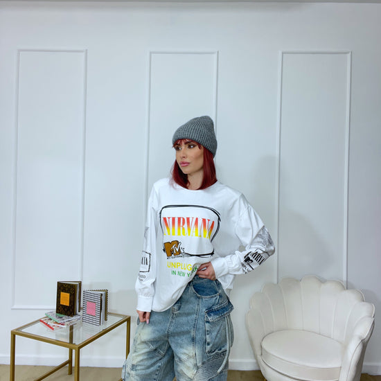 Maglia con stampe tg unica oversize manica lunga
