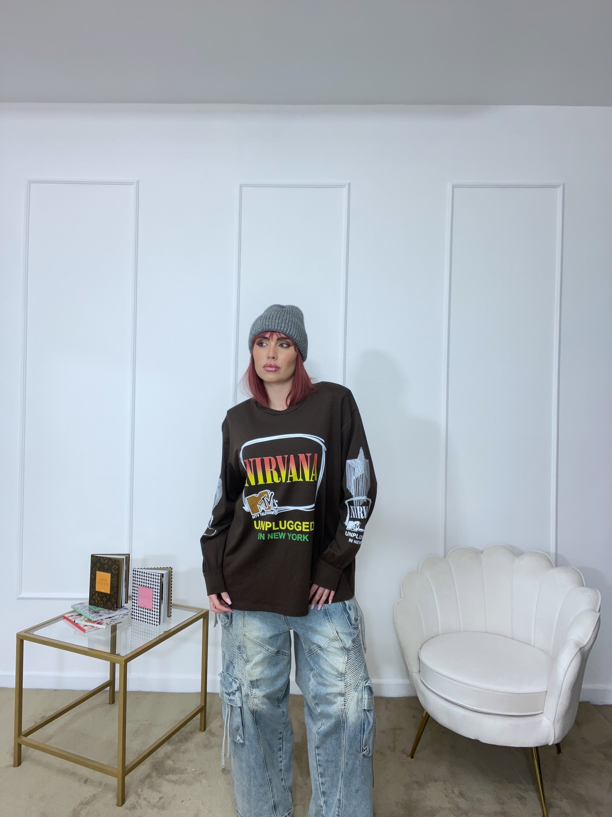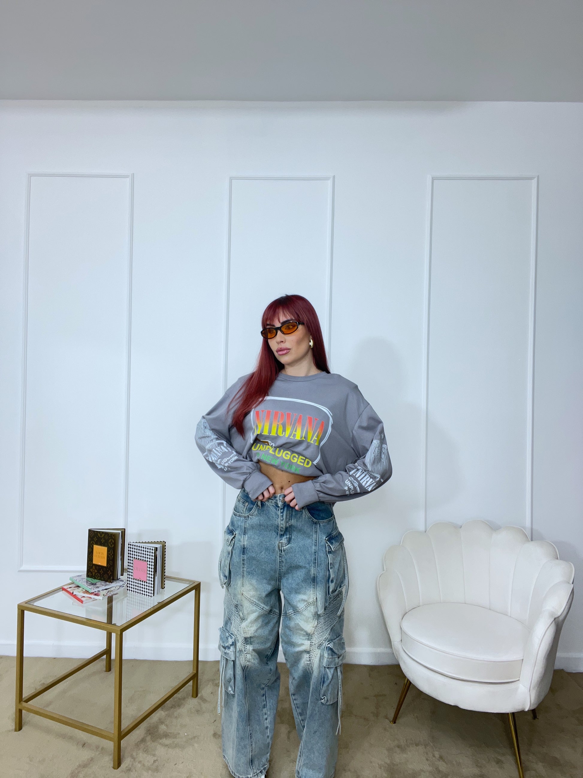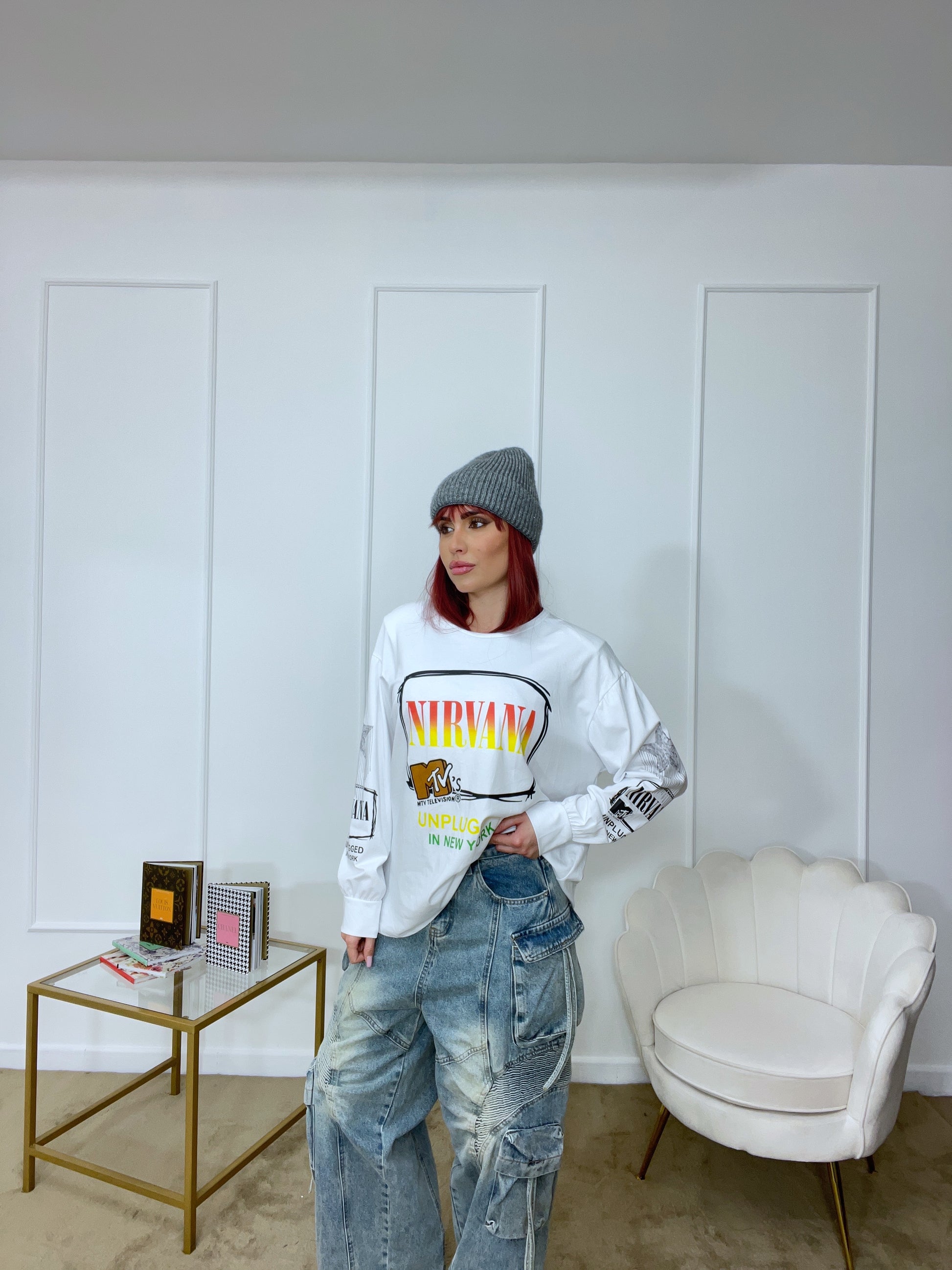 Maglia con stampe tg unica oversize manica lunga